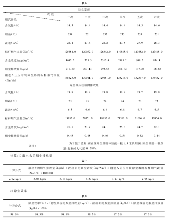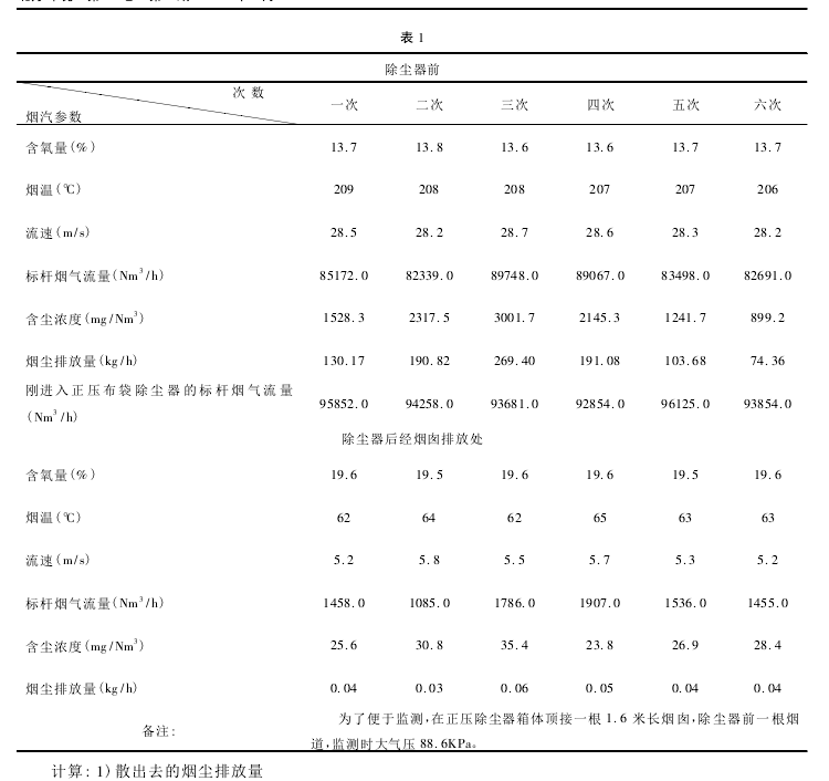 布袋除塵器的六組排放量,可以看出它們的排放量基本相同,誤差很小,所以這種方法又得到了實(shí)際監(jiān)測的肯定,這為我們?nèi)蘸蟊O(jiān)測正壓除塵器提供了一種實(shí)用正確的監(jiān)測方法。