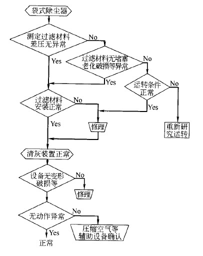 布袋除塵器檢修流程如圖所示。在工作中維護容易被忽視的原因有三個: