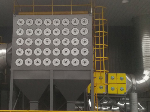 濾筒式收塵器具有占地面積小,維護管理方便,維護管理方便、操作簡易,安全可靠,運行費用少等優點,是解決高溫、高濕、聚結性粉塵的新一代產品,該設備還適用于冶金、冶煉等行業和高溫含塵氣體的處理。該收塵設備采用了高溫、疏水性較強的拆褶式濾筒作為過濾介質,它可以在全濕狀態下進行含塵氣體過濾,該濾筒不僅具有體積小,過濾面積大等特點,且能在限定溫度和全溫狀態下長期使用。除塵設備采用定阻或定時形式對濾筒進行脈沖清灰,確保濾筒表面清潔和有效正常運轉。該收塵設備還配有溫度顯示及報警系統等裝置,當溫度越過額定什時,將自動報警,以便及時采取相應措施。